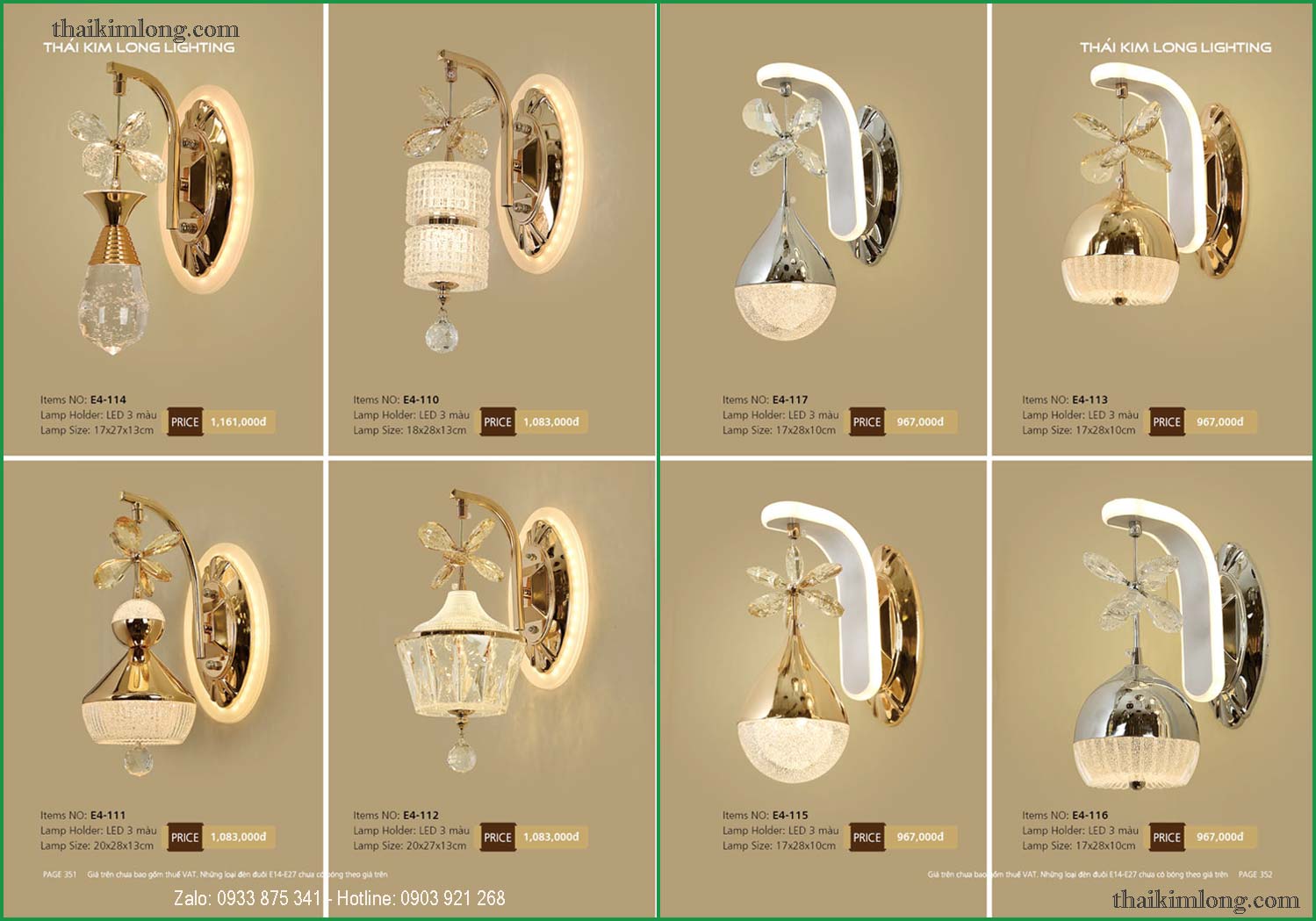 Catalogue Đèn Tường Thái Kim Long